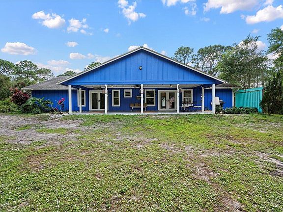 Welcome to your new homestead located in the highly sought after Jupiter Farms Equestrian community. This lovely 3 bed, 2.5 bath home sits on 1.25 acres of fenced land. The pond has been filled. Exterior just painted, All new complete impact windows and doors. Volume ceilings, newly updated bathrooms, new Venetian plaster floors & walls, new stone accent wall. Beautiful Brick wood burning fireplace, Large covered patio and front porch, paved driveway, 2 car garage, and a stainless dog washing station for your fur babies. No HOA! Bring all your toys, pets, horses, chickens, and fall in love with the sunsets. Clear chandeliers (2), large basket lights (2), Bonus / mud room light, primary bedroom lights, powder room mirror, and curtains do not convey. Come buy me!
