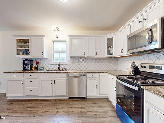 Make offer! The main level offers a fabulous layout with a formal living room and dining room, a spacious eat-in kitchen, and a large family room featuring a fireplace. A conveniently located half bath completes the first floor. Features include arched doorways, intricate moldings, 2 story entry and updated flooring! Upstairs, the generous primary suite impresses with a tray ceiling and a private ensuite bath, complete with a soaking tub, separate shower, and dual vanities. 3 additional bedrooms, a full hall bath, and a dedicated laundry room provide plenty of space and functionality. Ample closet space throughout ensures all your storage needs are met. The deck (2021) out back overlooks the private back yard. Recent updates include interior paint and flooring. Warranty provided! Awesome location on a quiet cul-de-sac within minutes to the new groceries, Norton Commons, Nortons Brownsboro Hospital and various shopping centers! Very convenient and quiet location!