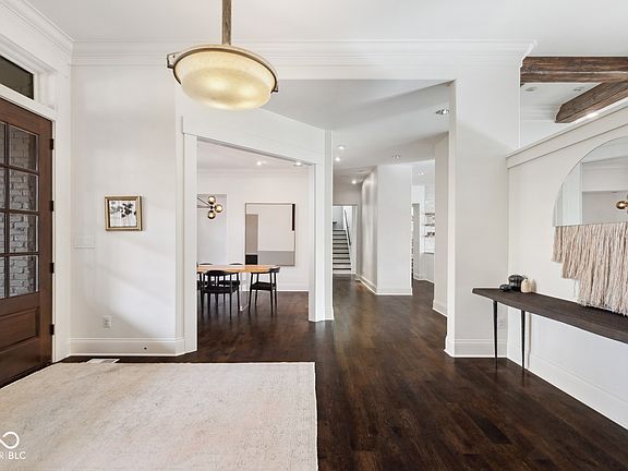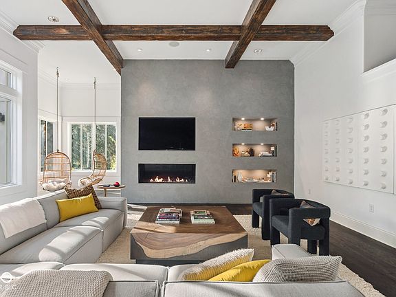 Experience modern California Contemporary living in west Carmel. This recently redesigned home showcases a stunning first-floor transformation by a custom designer. Enjoy the luxury of two master suites-one on the main level and one upstairs. The family room features a sleek linear fireplace and a beamed ceiling, creating an inviting and contemporary atmosphere. The kitchen is well-appointed with a wet bar, perfect for entertaining, while the private first-floor office offers a quiet workspace. Designer lighting enhances the elegance throughout the home. Upstairs, there's a large unfinished space ready to be transformed into a 5th bedroom or recreation area. The lower level includes a wet bar, theater area, and workout room, providing a perfect setting for relaxation and entertainment. Outdoors, an inviting fireplace, patio, and built-in grill make the large, private lot ideal for gatherings. Located on a secluded street off Towne Road, this home is just across from Towne Road Elementary, blending convenience and privacy in one of Carmel's hidden gems.
