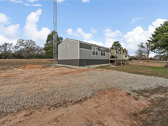 Check out this almost new Oak Creek single wide home on 5.19 acres in Bremond ISD. This home boasts Farmhouse charm throughout. The open concept living/kitchen areas make entertaining easy. The kitchen features an eat in island, new appliances, large stainless farm sink, built in buffet with great storage. Did someone say COFFEE?? Take a gander at the perfect coffee bar with its own sink and tons of storage. The living area features added charm with the built in cabinets and tv display and great recessed lighting. When the day has you worn out you can escape to the large master suite and enjoy your waterfall shower to wash that stress away. Down on the opposite end of the house you will find bedroom 2 & 3 separated by a nice sized guest bath with a shower/tub combo. The home has ceiling fans throughout. The skirting around home is metal with a sliding door for easy entry under the house and home is tied down with hurricane straps and sits on a white rock pad approximately 15 thick. Outside you will find a front deck that just needs to be covered for added shade and enjoyment. The land is sandy and there is plenty of room for 4H or FFA projects. A barn shell is present and can be a great storage area with a little TLC. An old set of holding pens sits behind the barn and can be fixed up for animals easily. The sellers have installed the Next Link high speed wifi tower that will transfer to the new owner. Come take a look today!!!