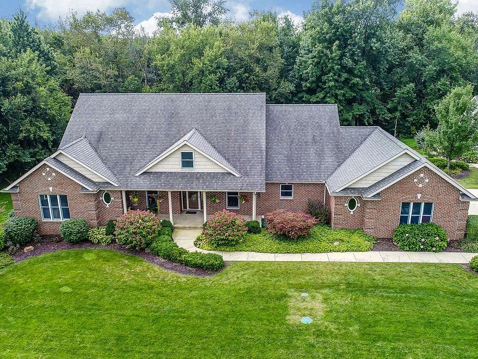 Stunning Private lot just a few minutes from Huntertown/Fort Wayne. One owner all brick front home with owner pride throughout! This executive custom ranch on walkout basement has it all! 3 Car garage with additional 30X40 outbuilding, 2.55 acres, over 5700 sq ft of finished space, scenic water pond/garden, wooded, raised gardens, professional landscaping, split floor plan, stairway from basement to garage, abundance of storage, multiple fireplaces, executive kitchen with custom cabinets, granite countertops and back splash, double oven, large pantry, oversized island and more. Master suite has scenic view of water feature and trees, whirlpool tub & tiles shower, double vanity and walk-in closet. Basement goes on forever with it's additional bedrooms, hobby/craft room, wet bar, storage room, library, entertainment and media room with built-ins. Home has 6 ton Geothermal HVAC system, 2 water heaters, laundry on both levels, Anderson Series 400 Windows on both levels, 2 sump pumps with battery back up and electrical panels on both levels and to the garage. This list of extras goes on!