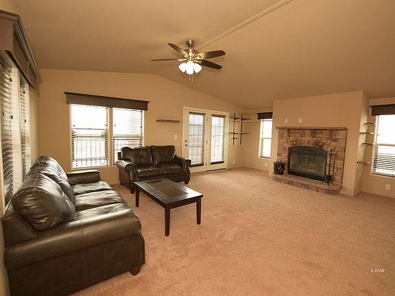 Charming country living awaits you on this one acre parcel. The cozy home features 3 bedrooms and 2 full bathrooms. Both Bathrooms have double sinks and a garden tub. The Master Bath has a walk in shower and tons of extra storage. The Master bedroom has a walk in closet as well one of the extra bedrooms. The wood fireplace creates the perfect ambiance for the chilly evenings. The home has a complete RV hookup for your guest. Chicken coup and an extra storage shed, Year of home is 2016 and was put on foundation in 2019 from the manufacturer. All windows have custom wood faux blinds. Covered deck and french doors. Carpets were just professionally cleaned. Home is move in ready! Sellers are offer ing $2,000 in Closing Cost AND a Home Warranty for the buyer.