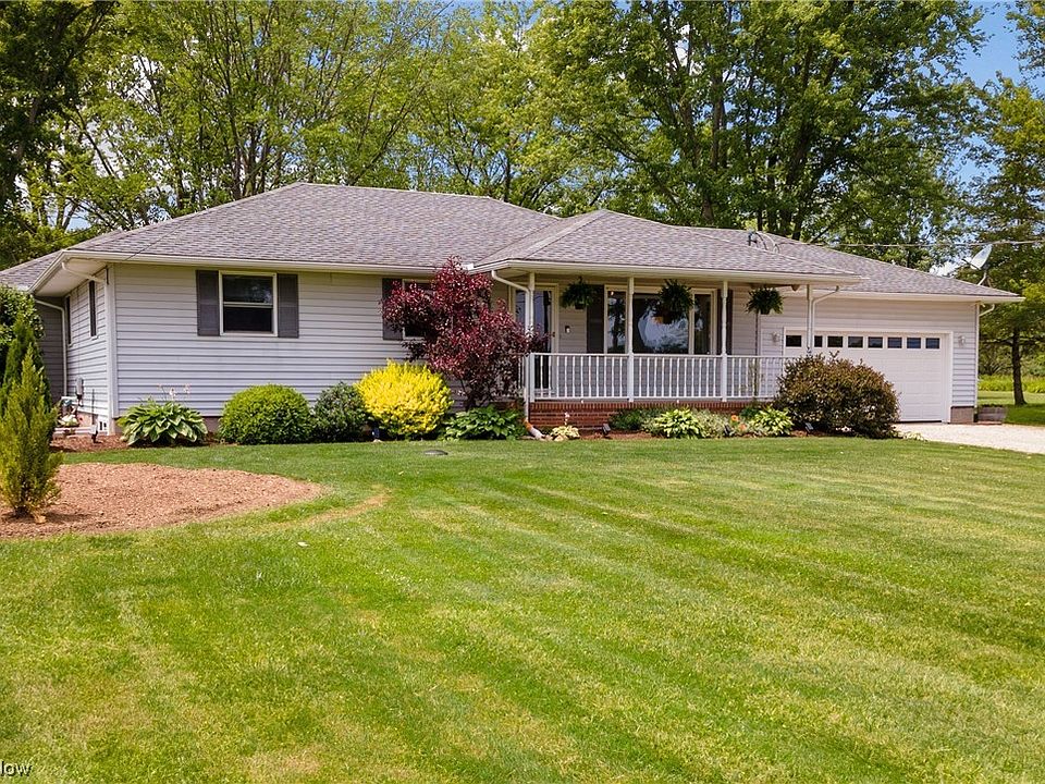 This immaculate countryside ranch with a 2021 addition is tastefully appointed and move-in ready! Conveniently located within a 10-min drive from Oberlin campus/downtown and easy access to major highways, it is a peaceful retreat with beautiful rural views! A welcoming drive with two visitor spaces leads to an east-facing front porch and into the formal living room overlooking the surrounding farms. An attached 2-car garage enters into a large kitchen with vaulted ceilings. The west-facing dining room addition overlooks the rear gardens and is large enough for family gatherings and can double as a family room if desired. The primary bedroom off the bedroom wing has a lounge/study area and an en-suite completely remodeled bathroom (2022). The two other bedrooms share a full bath accessed from a generous hallway. The basement is fully finished with porcelain tile floor and is separated into areas for recreation, an additional bedroom with egress window, and a laundry/utilities room with