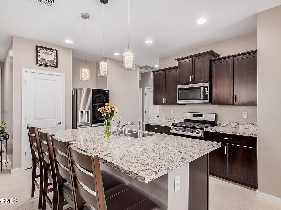 Seller offering credit toward buyer's closing costs! Beautiful 3-bed, 2-bath home built in 2022 featuring an open Camden floor plan with espresso cabinets, granite countertops, and a large island. Enjoy stone-look tile flooring, warm carpet, and a covered patio perfect for Arizona evenings. Conveniently located near freeways, shopping, dining, and parks. Move-in ready and waiting for you