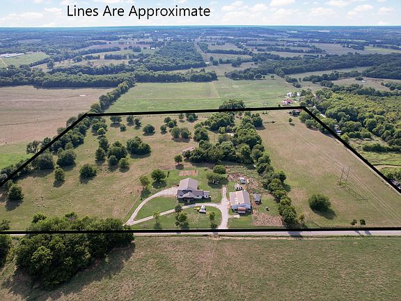 Located 1/2 way between Springfield and Joplin this home has over 5800 square feet of living area on 22.88 acres. The shop is 30x48 with a 17 ft lean to. Pipe fencing across the front of the property, the circle drive and the large covered front porch welcome you from the second you see it. The living room, dining area and kitchen is all open and measures 58x22. All 5 bedrooms on main floor are nice size. There is a stair case to the attic which is floored for extra stroage. The basement has a 2nd kitchen, 2 large areas, full bathroom, large pantry and a utility room. Great garden area complete with grapevines. There is a covered tiled deck off of the living room with lots of great views and measures 43x12. The Mud room is 16x10 and has a 1/2 bathroom. Shown by appointment only. Home is fully wired for electric with electric panel in place. Just need to add outlets and light fixtures. Kitchen has solid surface counter tops, pull out table with extra leaf for more counterspace and pull put drawers. Cabinets are pecan and custom built. Basement is almost finished and is well insulated. If you are looking for the home that has the space for everything and the peaceful location you have just found it.