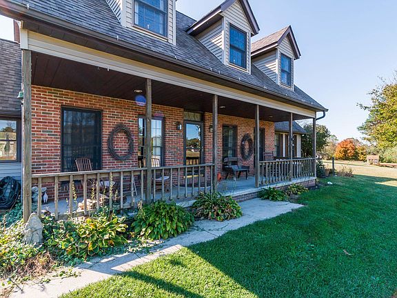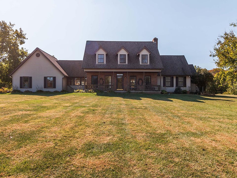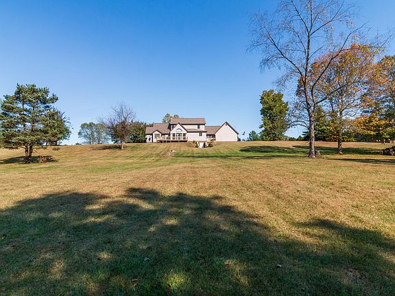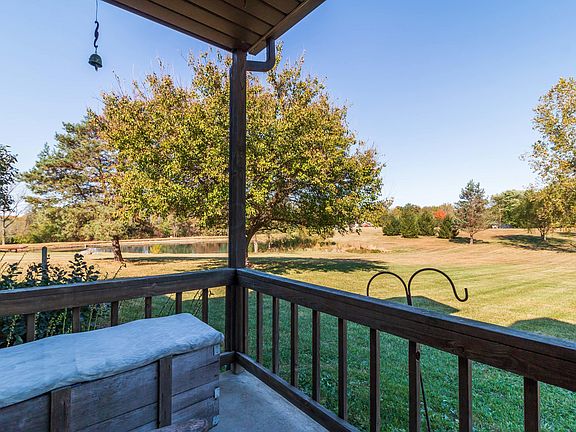 PARK LIKE SETTING, 5 acres on partially wooded rolling hills. This home features 3,200 sq.ft., 5 Bdr, 4 Ba, 4 season's room, oversized front porch to sit and overlook a tranquil pond, large deck, 2 gorgeous brick to ceiling fireplaces, exposed beams, perfect for entertaining! Large bright kitchen w/ wood floors, holiday size dining, spacious great room w/fireplace & opening to the sunroom. 1st FL Owners Suite w/ Spa like Bathroom & Huge Walk-in Closet. Upstairs boasts a 2nd Bedroom suite w/ Private Full Bath w/ Walk-in Closet and other generous sized bedrooms. Finished Walkout basement's fabulous recreation rm features the 2nd brick fireplace, 5th bdr & storage rm. New Well Pump, additional insulation blown into walls 4 yrs ago by USA Insulation for added efficiency. Kinetico system 4yrs