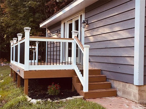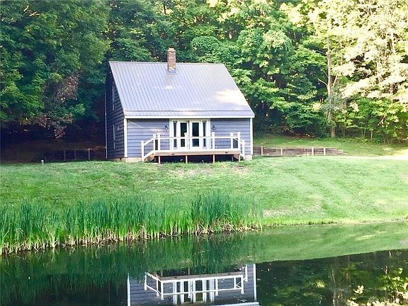 Newly remodeled inside and out, this home looks like a brand new home. New roof will be installed 8/17/2019. New kitchen, new baths, new paint inside and out, new deck, furnace with a 10 year warranty, deck railing, retaining wall, appliances and more. All you have to do is move in. Just sit on your deck and listen to the bullfrogs. Very peaceful with deer, turkey and other wildlife coming around to say, "hello". Large pond is stocked, so it's easy to sit on the bank with your kids; line in the water and just wait to see what surprises take the bait!