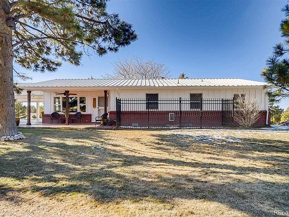 Welcome to Thunder Paw Ranch! A beautiful 2+ acre property sitting high at 6300' in elevation in unincorporated Douglas County. This property has massive Ponderosa Pines, Norwegian Spruce, Douglas Fir and Blue Spruce. No HOA! This is the country property you have been waiting for centrally located, only 8 minutes to Southlands Mall and 15 minutes to DTC. Nestled back a half acre from the street is the main house with 2 bedrooms and 2 baths, featuring a king sized floating bed in the master bedroom, beautiful custom built-ins and real oak hardwood floors. Attached is a large over sized carport for parking and patio gatherings. Also on property is a detached 2 story garage/workshop, complete with storm shelter, tons of storage and space for a small business (zoned rural residential). This property has a water well that produces cold, pristine water. Propane heat and hot water (natural gas available at curb line if desired), custom aluminum hail proof roof, new high efficiency LOPI wood burning fireplace (main house) and LOPI wood burning stove (garage), septic system, leach field, Direct Link internet, newer microwave, dishwasher and hot water heater, commercial grade washer and dryer, and also below ground sprinkler system for yard but also in the all organic large fenced garden. Wait, there is so much more! Let's take the time to appreciate all the recreational and lifestyle perks, starting with the 50 yard gun range ON property. You can also legally bow hunt during bow season with the proper license. Tons of wildlife in your own backyard; mule deer, great horned owls, and fox. Large, caged duck/chicken pen with ducks provides fresh eggs. Outside the backdoor is a relaxing, ample 8000 gallon Koi Pond including 20 small to massive size Koi and Channel catfish. Come see today!