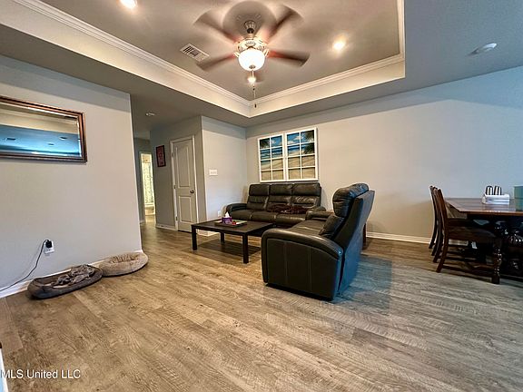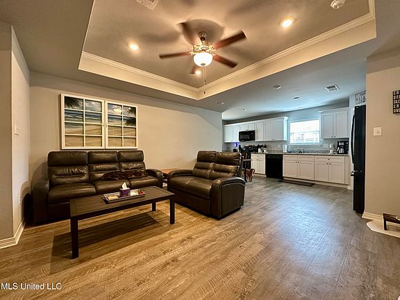 Precious four bedroom two bathroom single family home appointed with granite countertops, soft-close cabinets, and luxury vinyl plank flooring. The main living area boasts a tray ceiling and recessed lighting. Open and functional layout with guest/children's rooms on one side and the primary suite on the other. Includes a walk-through laundry room that is accessible from the main living space as well as the walk-in closet in the primary suite. Covered patio and sizable backyard. Diamondhead amenities: swimming pools, tennis courts, two golf courses, airstrip, marina, country club, and so much more.