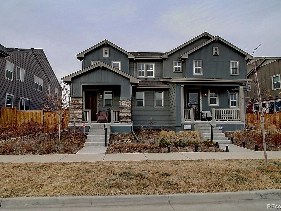 BEAUTIFUL paired home in sought-after Stapleton! Covered front porch with Mountain View and view of walking/jogging path! Nice foyer welcomes you to spacious open floor plan with gorgeous laminate hardwood floors, 2 Bedrooms +Loft, and 3 bathrooms. Main level is ideal for entertaining friends and family--Kitchen opens to Dining and Living Rooms, and features stunning granite-slab countertops with decorative glass-tile accent/backsplash, stainless-steel appliances, great walk-in pantry, and large center island with additional seating x4! Set up a office, media room, or kids' playroom in the upstairs Loft! Laundry Room is conveniently located next to the bedrooms! Master Bedroom has private 5-piece bathroom with deep soak tub and oversized shower. Attached 2-car garage with extended driveway! Walk to schools! Convenient to I-70 and Stapleton Shops/Restaurants! Great home! Call now to see for yourself!