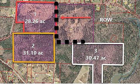 3 lots for sale. 1. 28.26 ac 2. 30.47 ac 3. 31.1. ROW easement makes all lots accessible. Buy 1 or buy them all. $3,200/ acre