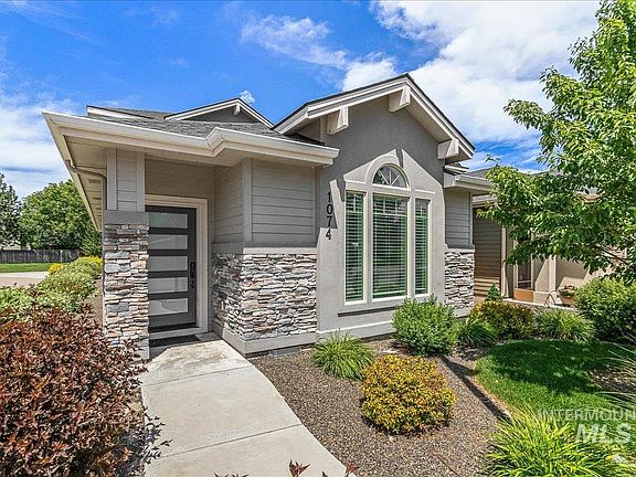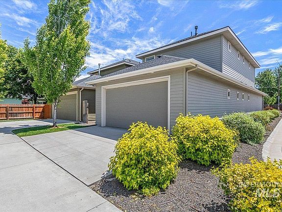 Phenomenal opportunity in SE Boise! Beautiful corner luxury cottage home makes living easy in this remarkably clean and well laid out plan. This two story home features wonderful natural light, vaulted ceilings and an open downstairs floor plan. Quality craftsmanship throughout provides a modern feel. Main floor sitting room with gas fireplace flows into open kitchen with island bar and deep stainless steel sink featuring granite countertops, stainless steel appliances, tile backsplash and gorgeous cabinetry making this a great home to entertain guests. The downstairs also features an ample sized primary bedroom with dual vanity, tiled shower and walk-in closet. Walk out to your private patio just outside your primary bedroom door. Finishing touches on the downstairs plan include half bath with granite and quality fixtures leading to the utility room with washer/dryer, deep utility sink and great storage. Large two car garage is accessed from back street adjacent to large park-like grounds including