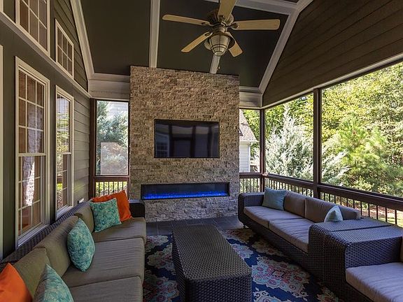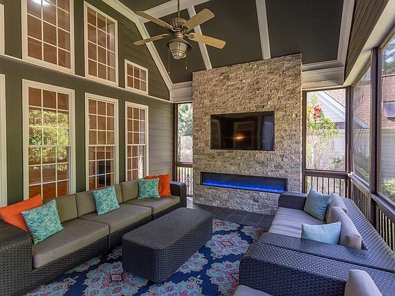 This light filled craftsman style home provides privacy and sits back from the road with mature landscaping in the highly desired golf course neighborhood of Chapel Ridge. The primary living area is on the main level featuring an open plan with family room that has a vaulted ceiling with a fireplace and built ins leading to the kitchen with a new Jenn Air gas downdraft cooktop. Extra large screened porch with fireplace and TV overlooking the private backyard with hot tub. Separate dining room with trey ceiling and wainscoting. Also on the main level are the primary suite with vaulted ceiling, an extra large walk-in closet and spacious bath with separate shower. A much sought after guest suite which could also be used as a home office. The laundry room is conveniently situated near the kitchen. The second level features two additional bedrooms with a shared bath, loft area with office space, very large Bonus room with wet bar, pool table and access to walk in attic. Custom shades. Roof replaced 2020.