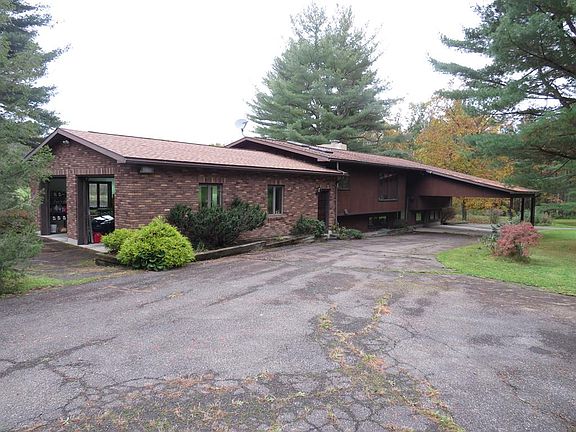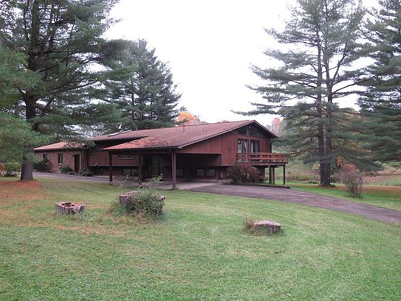 Enjoy life, living or recreating in this secluded Contemporary on 12.48 acres cleared and wooded tract with large pond. 3 bedrooms, 2 bath, large kitchen with large dinette, formal dinning room. Vaulted ceiling in living room, master bedroom and master bath. Large windows and sliding doors in living room, master bedroom and lower level family room over looking pond. Living room and master bedroom has excess to out side 14' x 70' deck also over looking pond. Cozy up to living room brick fireplace or stone fireplace in family room with wood stove insert. Extra rooms in lower level for den, office, sewing room, sport room, etc. Newer detached 30' x 40' three bay garage with work bench. Horse shoe driveway for easy turning while parking under the large carport. Deer and turkey mosey about. Enjoy the quiet fishing for bass in your own private pond. Enjoy, Enjoy!
