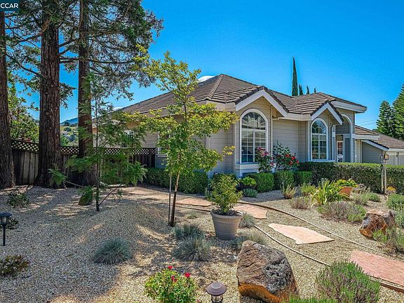 Stunning home located in the highly sought after neighborhood. Formal living room just off entryway, open to dining room, offers a high ceiling and windows overlooking the manicured front yard. Light filled, large family room with gas fireplace and bar, glass door leading to the beautiful backyard with view of Mt. Diablo and Hills. Rope lighting under crown molding and shutter window coverings. Gourmet kitchen with bay window and granite countertops, ample cabinets, gas hook-up at stovetop (capped off now). Travertine kitchen floor. Travertine and glass backsplash. Master bedroom en suite with vaulted ceilings, and fireplace. Master bathroom (towel warmer) and walk-in closet with cedar flooring. Remote/radio control master bath top down-bottom-up shades. White bronze sink in half bathroom downstairs. Crystal pendant lights. Crown molding throughout except the laundry room. Travertine floor in hallway bathroom. Inside laundry room with cabinets and sink. Hot water circulating pump. Exterior electrical outlets, 5/8-inch Brazilian Cherry floor. Drought tolerant plants. 4-year-old deck. Large vegetable garden. Possible RV parking. Minutes to Concord and Pleasant Hill BART, De La Salle and Carondelet High Schools, several shopping centers, restaurants, Lime Ridge hiking trails.