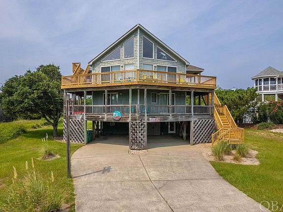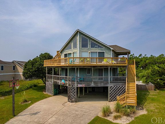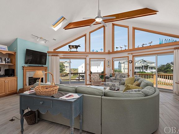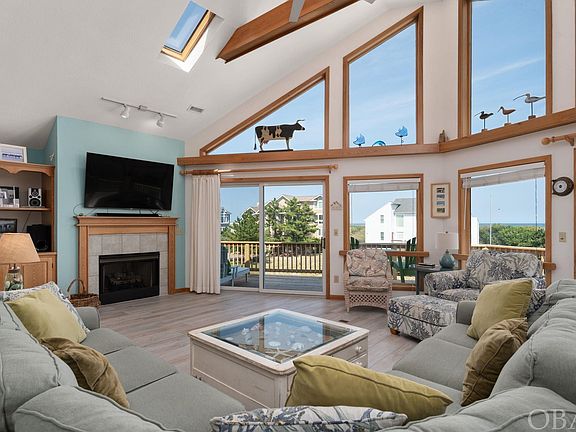 Welcome to Cowabunga! Your perfect beachside getaway awaits. This spacious semi-oceanfront property offers everything you need for an unforgettable vacation. Located just steps away from the beach, you'll enjoy stunning ocean views from the top-level deck, including a crow's nest deck with a view of The Currituck Lighthouse. Relax on the wraparound decks, take advantage of the screened porch with a picnic table for al fresco dining, and soak up the sun. Inside, the top level features a beautifully designed great room with large windows, a gas fireplace, and easy deck access. The updated kitchen includes two dishwashers and stainless steel appliances, and cambria countertops making meal prep a breeze. The primary bedroom on this level accommodates a king bed and private full bathroom with walk-in shower. Up the stairs from the living area, is a fun loft space with sleeper sofa. The mid-level offers two spacious en-suites and two additional bedrooms with a shared bath. You can unwind in the hot tub on the exterior decking or lounge in the hammock while enjoying the views and sea breeze. On the ground level, there's a rec room and an additional bedroom with a full bath. Outdoors, you'll find a fully gated private pool area, charcoal grills, a volleyball court, and a carport with two enclosed outdoor showers. Cowabunga! has everything you need for a fantastic vacation. Jump right in and enjoy this amazing opportunity in the sought after Whalehead Community!