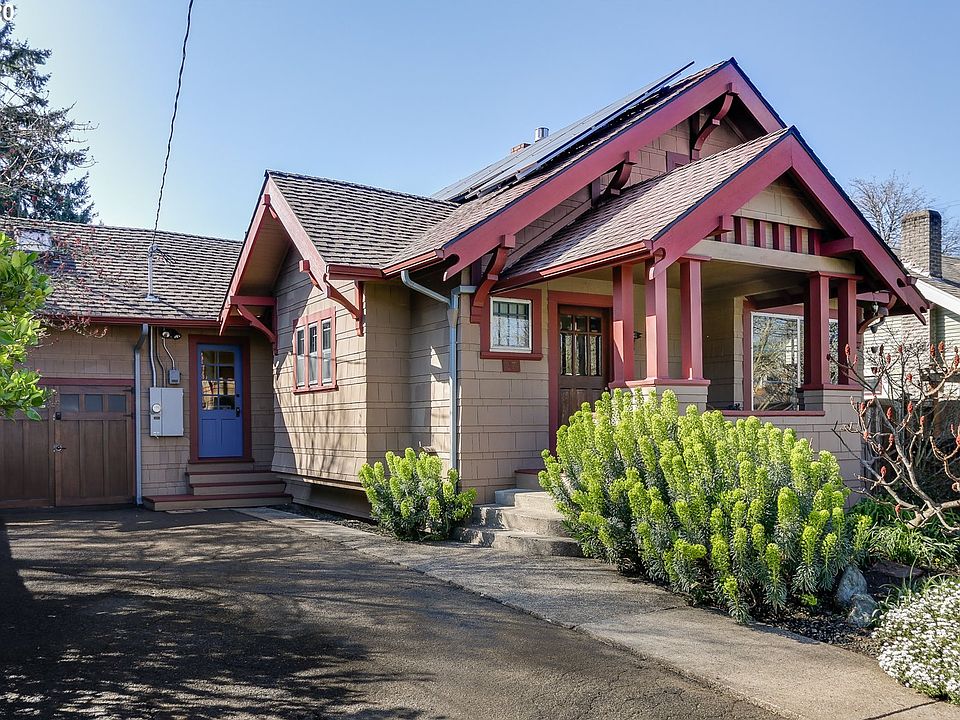 Enjoy living in the heart of Eugene! This vintage gem will delight the most discerning of buyers offering warmth year round! Boasting original wood trim, built-ins throughout, glass door knobs, claw foot tub, arched doorways, 2 heads for ductless heat pump & gas fireplace insert, hardwood floors, 2+ bedrooms, gas cooking & breakfast nook, net metered solar energy, rain catchment system for gardens on N. side of home, & updated electrical panel. Add'l bath house & adorable loft above garage!