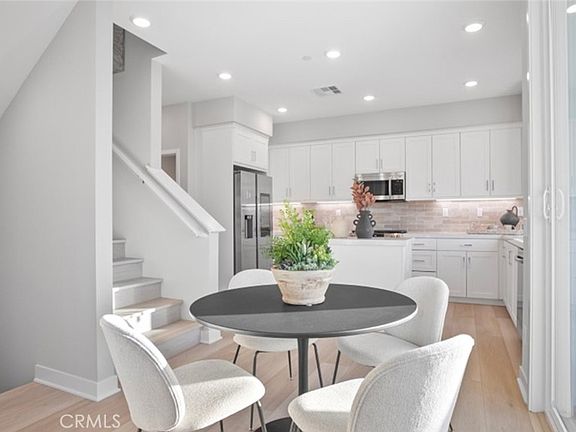 The kitchen, living room and dining room are situated among an open floor-plan on the second floor. A patio door opens up to a deck for effortless indoor-outdoor living and entertaining. This home has a main floor bedroom, 1 large primary suit which is comprised of a restful bedroom, en-suite bathroom and walk-in closet. This home also has a unique and large bonus room on the top floor of the home. All Samsung Appliances are included along with the refrigerator! Spacious open living design with a large kitchen and living space that leads to a spacious outdoor covered deck. No Mello-Roos taxes, close to Disneyland, and easy access to the 5 & 91 freeways!