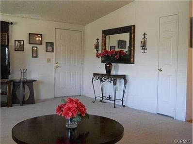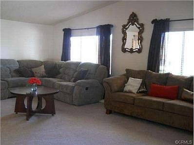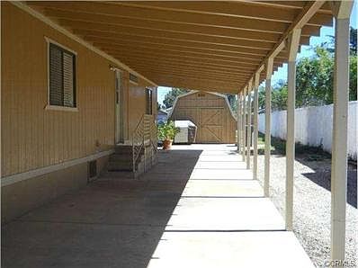 Lovely Mobile Home on permanent foundation, outside sitting area on large lot. Home has large living room, dining area with built in niche, good size kitchen with small breakfast area with refrigerator included. Master bedroom full bath, built in cabinets and large 2nd bedroom, full bath in hallway. Inside laundry with built in cabinets with dryer included. Covered car port room/parking for 3 cars, shed at end of drive way. Room for RV parking /RV entry from alley way. All utilities in back yard for RV hook up. Home easy access to 60/10 freeways. Home has recently been painted inside/out