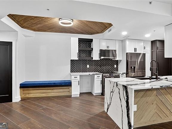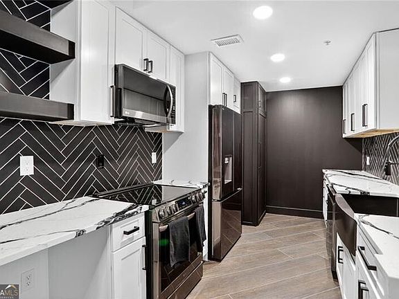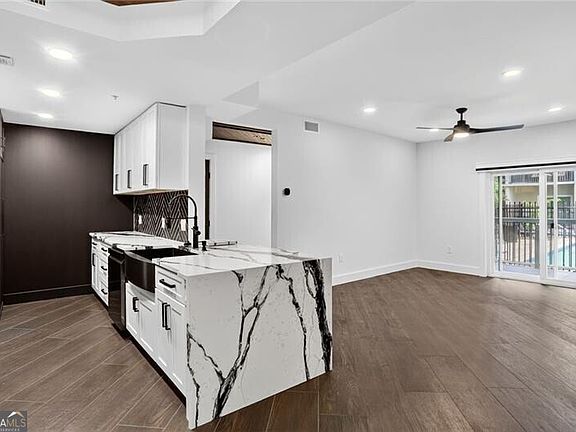 Step into this fully renovated 2-bedroom, 2-bath condo in the heart of Midtown-where high design meets unbeatable value. Every inch of this residence has been thoughtfully reimagined with designer finishes (soft close hinges!), from the porcelain tile floor and sleek lighting to the modern kitchen featuring quartz countertops, custom cabinetry, and stainless steel appliances. The open-concept living area is perfect for entertaining, while the private balcony offers a quiet retreat above the city. Both bedrooms feature generous closet space and spa-inspired baths with elevated tile and fixtures. Located in a full-amenity building with a fitness center, pool, and gated parking, Peachtree Walk combines convenience, community, and style-all with some of the lowest HOA fees rarely found in Midtown. Simply put, this is the best-looking unit for the best price in Midtown. Walk to Piedmont Park, the BeltLine, MARTA, and some of Atlanta's best dining and nightlife-all right outside your door.