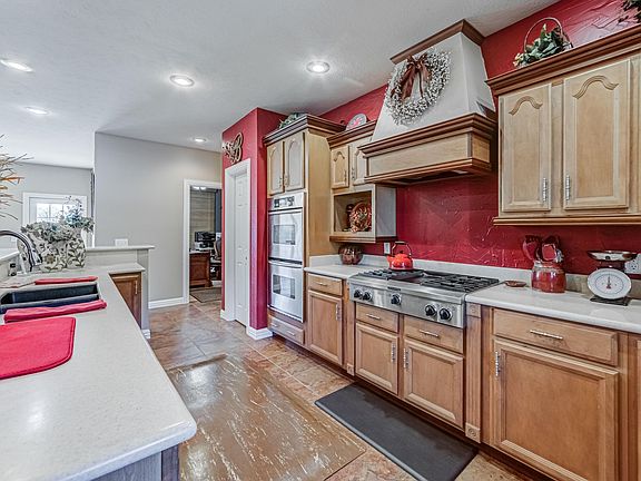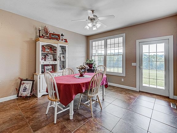 Located in the Nixa School District, within one mile of the Two Rivers Mountain Bike Park that is on the James River. This sprawling Brick ranch home sits on 6.16 acres. Driving into the property, a circle drive and covered front porch greet you with white stately beams. The home includes at its entry a formal living and formal dining, along with a large family great room with a wood burning fireplace. The kitchen has a wraparound counter for extra seating and kitchen/dining area. Upstairs is another great room that can be used for a media/game room, that includes a half bath and wet bar. The master bedroom has a bonus room and see thru gas fireplace. In the master bath is a walk-in closet, soaker tub, oversized shower and dual sinks. Off the 3 car garage is an additional apartment for in-law quarters, complete with a full sized kitchen, living room and bedroom upstairs. Open fields greet you on the back deck, with a great view facing the James River and the 400 acre Mountain Bike Park. The three car garage has an attached 35'X52' parking pad. A storm shelter is built into the interior of the home. This is a very spacious and well laid out home. Come see what this great home has to offer.