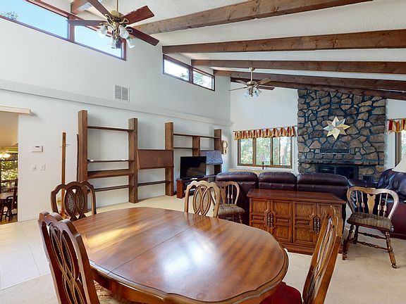 Beautiful, wooded seclusion just minutes from Springfield! This 4-bedroom, 3-bath rustic country retreat featuring a wrap-around deck is nestled in the woods providing a peaceful, treehouse feel. Exterior of the home was repainted in the 2021; roof replaced in 2019. The spacious living room boasts gorgeous wood-beam ceilings with a wood-burning fireplace; the kitchen has updated solid-surface countertops; there is also a whole-home water softener. Three bedrooms are located on the main level (including master with ensuite). The walkout basement has a cozy den with wood stove, a third full bath, fourth bedroom, and sizable laundry room. Lots of windows throughout allow you to take in the beautiful foliage. House has been well-maintained throughout the years.The 9+ acres include a detached 2-car garage plus shop building and access to Sawyer Creek, which runs through the property.