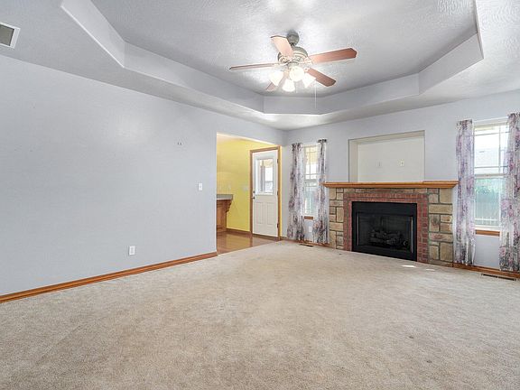 Welcome to your 3-Bed, 2-Bath Gem with Modern Upgrades! This home offers both style and sustainability with numerous energy-saving features. Step inside to beautiful hardwood floors in the entry, hall, and kitchen/dining areas, and enjoy the open kitchen with a large walk-in pantry and custom staggered cabinetry. The cozy living area features a stunning stone/brick fireplace. The master suite boasts dual sinks, a marble vanity, and a walk-in shower, while marble window sills add an elegant touch throughout the home. Outside, a privacy-fenced yard includes a covered deck and storage shed, with extra electrical outlets for Christmas lights and a generator hookup. Energy-efficient highlights include Low E argon windows, high-rated insulation (R15, R30/38), insulated garage walls and doors, and a high-efficiency HVAC and water heater. This home is move-in ready with stylish brand new appliances, and built for energy savings!