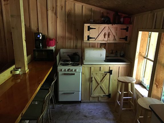This 2-bedroom seasonal Cottage is in excellent condition-has gravity fed water supply to the Cottage and an outhouse-great getaway property very secluded backyard and covered deck-Parking across the street-has 100amp electric entrance-Gas Stove-Refrigerator-Wood Stove