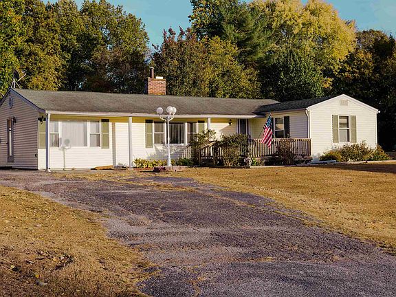 Don't miss all this property has to offer as you drive by on State Highway 37! It sits back away from the road on a deep 1.5+/- acre lot with a long, paved driveway leading to the 3 car garage with steel beams in the roof in case you need to lift an engine or two. There's a lot of room for parking and plenty of space for turning around. You'll love the extras you'll find; beautiful hardwood in the living room/hallway that extends through the bedrooms under the carpet, built-ins, that "extra space" everyone is seeking that can be used as an office/craft room/dining room/etc, a family room with a wood burning stove for those cold days of winter, new blown-in insulation and spray foam in the attic, and an encapsulated crawl space. There's even a bluetooth speaker in full bath light fixture! Relax on the back patio while the fur-babies enjoy the fenced area. Wildlife? Yes... lots of rec space out back. Furnace, Central Air, and water heater were replaced in 2020
