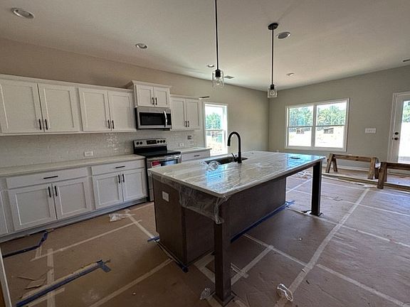 RIVENDELL PLAN - Entry foyer leads to open concept featuring Family Room w/wood-burning fireplace boasting stone surround and wood accent detail; spacious dining area, and kitchen ideal for entertaining. Kitchen features shaker style cabinets, quartz counters, designer backsplash, and a large corner pantry! Stainless Electric Range/Oven, Dishwasher, and Microhood included. The Owner's Suite is nicely sized and features luxurious tiled bathroom with double vanity boasting granite counters, garden tub, and separate tiled shower. Also on the main level, you'll find mud room entry from garage and guest bedroom/bathroom. On the second level, you'll enter into loft/study area leading to two guest rooms which share a jack and jill bath. Mohawk Revwood flooring in much of the main level common area and tiled flooring in bathrooms. FOAM INSULATED ATTIC, Fiber Cement Siding, Architectural Shingled Roof, and Rear Covered Patio. Mins from Historic Downtown Opelika, I-85, and Southern Union!