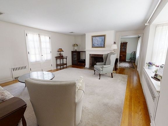 This four sided Stone and Brick Ranch is centered on a beautiful lot on the North side of town. French doors from a living room complete with a fireplace leads to a private patio for your enjoyment. The custom built kitchen includes a built in wine rack, upgraded stove and overlooks the back yard. A separate eat in area offers a high ceiling complete with a skylight and an entrance to the outside to facilitate grilling. The private foyer entrance opens to hardwood floors throughout this home,a large living room with brick surround fireplace, 3 bedrooms, one which includes a powder room, formal dining room and a light and bright eat-in kitchen. A side entry garage provides easy access to the kitchen and also the full finished basement which includes a dry bar and another powder room.