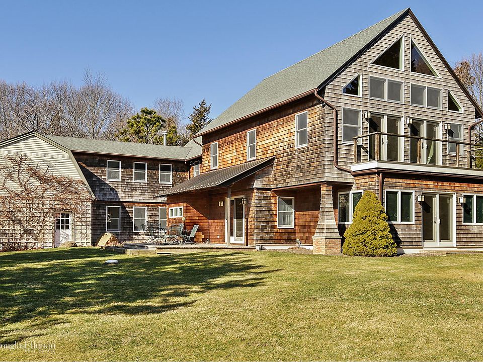 This Unique Home is move in ready. Located in the aritists section of East Hampton . Home has been expanded and renovated and has 5BR /5Baths. There is a gourmet kitchen and many beamed ceilings. There is deeded access to and views of Accabonac harbor. Permits in place for pool with water view. A must see.