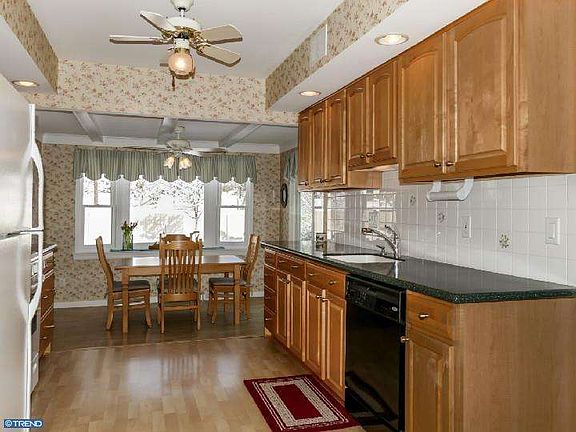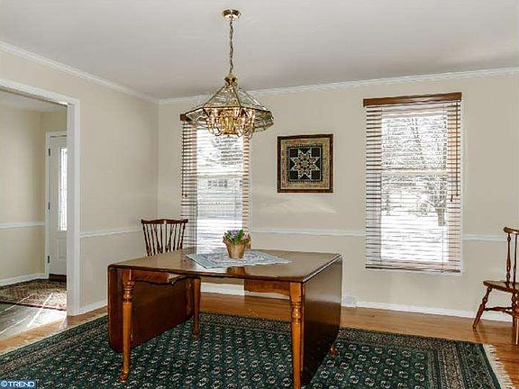 Beautiful brick-fronted colonial with a terrific fenced-in rear yard backing to acreage of a large estate home. Formal Foyer entry is sure to impress with its slate flooring, moldings & turned staircase. A bright Living Room features gleaming hardwood flooring & neutral d~cor. The formal Dining Room also boasts neutral paint, crown molding, chair railing & hardwood flooring. An updated Kitchen boasts upgraded solid-surface Corian countertops with bullnose edge offers ample work space. There is an abundant amount of upgraded raised panel maple cabinetry, white tile backsplash, recessed soffit lighting & crisp white appliances. Attached to the Kitchen is a Breakfast Room with an open beamed ceiling, bay window & sliding glass doors to the rear yard. The large Family Room has a beautiful brick fireplace flanked by custom built-in cabinetry, display shelving & windows creating a stunning focal point. There is also hardwood flooring, an open beamed ceiling, double windows & a door to the rear yard from this spacious room. Main Level Office allows for a private space to work, while enjoying the views of the rear yard from a large window. A Laundry Room, Powder Room & 2 car side entry Garage with inside access complete the Main Level. Head up the turned staircase to the Upper Level of this home. The Main Bedroom has neutral paint, crown molding & plush carpeting. It offers a walk-in closet & an updated en-suite Bath boasting an upgraded double sink, white tiled walls, white shower & upgraded oak vanity. There are 3 additional Bedrooms upstairs, all with ample closet space. The Hall Bathroom has an upgraded double sink top, tile flooring & tub/shower combo. There is a large unfinished room over the Garage, currently used as storage, which could be finished into a 5th Bedroom. This home includes a full, unfinished Basement. The rear yard is surrounded with upgraded vinyl fencing (installed in 2009) & offers a patio overlooking colorful plantings to be enjoyed in the warm months. Long-time owners replaced roof & windows, remodeled all Baths & Kitchen & more! Whole house generator installed in 2013. New hardwood flooring installed in Dining Room, Living Room & Family Room in 2012. Gas heater & central air conditioning replaced in 2010. Average utilities: PECO (gas & electric) = $229/mo, Water = $106/mo, Sewer = $134 quarterly.