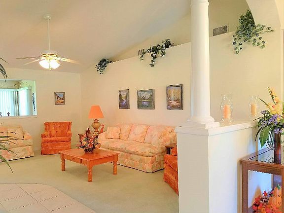 Situated on an oversized corner lot on a cul-de-sac in desirable River Greens, this home has a beautiful view of the 4th and 5th fairways. With tons of curb appeal you will see from the moment you pull in the driveway that the home has been very well maintained. The inside is immaculately kept as well with cathedral ceilings, a formal dining room just off from the kitchen, a breakfast bar open to the family room and living room. The spacious laundry room feautures a half bath. Closet space galore including the large closet in the garage for added storage. HUGE 13x20 master en-suite. You will love the River Greens lifestyle and this gorgeous home!