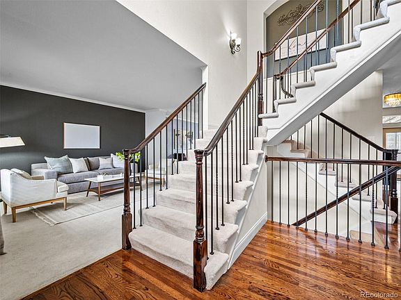 A craftsman-style home with mountain views and timeless traditional finishes emphasized by natural light, high ceilings and a towering second-story staircase. Upon entry, a foyer reveals a massive rear family room with two-story windows and gas fireplace; plus, a secluded hallway with ½-bath and laundry room granting access to the large 3-car garage outfitted with storage and work area. Adjacent, a spacious, gourmet kitchen emerges with endless cabinets, center island with seating, sleek appliances and back door welcoming the outside in for relaxing alfresco dining and endless entertaining. Beyond the kitchen, a formal dining room offers seamless entry to the front living room for a quiet escape. A second-story landing produces a pair of bedrooms, full-bath with two sinks and a sizable loft overlooking the family room below, while a stately primary suite shines with a modern barn door separating it from the 5-piece ensuite featuring a unique corner soaking tub, pair of vanities, and dual walk-in closets. Added living space in the basement promises endless leisure with game room featuring wet bar and two beverage coolers, fitness room, convenient home office or additional bedroom, and ¾-bath; plus, storage equipped with shelving and utility sink. Neighborhood HOA maintains common grounds, community pool and tennis courts, and organizes regular neighborhood events. Quick access to I-25 for travel throughout the Front Range.