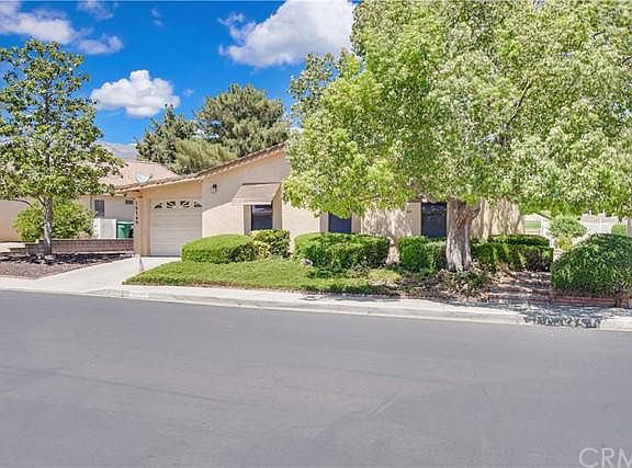 Golfing enthusiasts, look no further! Great 3 bedroom 2 bathroom home sitting on the golf course located in the secured gated 55+ Highland Springs Country Club community in Cherry Valley. This home offers 1,830 square feet of open living space, two sunrooms, a utility room/workshop and has an attached single car garage. Coming into the home you enter into the spacious living room with high vaulted ceilings, carpet flooring and custom wall paper dcor. The living room flows seamlessly into the formal dining room, kitchen and family room! The kitchen boosts tons of space with wood cabinets, formica countertops, double oven, built in gas range, tile flooring, a breakfast bar and opens up to the family room. The laundry room is very large and is adjacent to the kitchen with TONS of cabinets for storage and has a door leading to an enclosed sunroom with a ceiling fan, carpet flooring, custom window coverings and has a door leading to the fenced in side yard. The spacious family room is highlighted with beamed ceilings, a wood burning fireplace with a mantel, abundance of windows allowing plenty of natural light into the space and has a door leading to an additional sunroom with a ceiling fan, carpet flooring and double doors leading to the living room. There is a hallway right off the living room that leads to the bathroom, 2 bedrooms and the primary suite. The hallway bathroom features a single vanity sink and a walk-in shower. The large primary bedroom is located at the end of the hallway with carpet flooring, built in cabinetry, two separate closets with mirrored doors and has an attached bathroom with dual sinks, tons of storage, a soaking tub with built in shelving and a separate shower! Outside you can enjoy either the fenced side yard with concrete or sit at the rear of the home and enjoy the relaxing 9-hole golf course! Highland Springs Country Club offers a clubhouse, pool, spa, tennis courts and a 9-hole golf course, all included with the HOA and is conveniently located near freeway, shopping and dining!