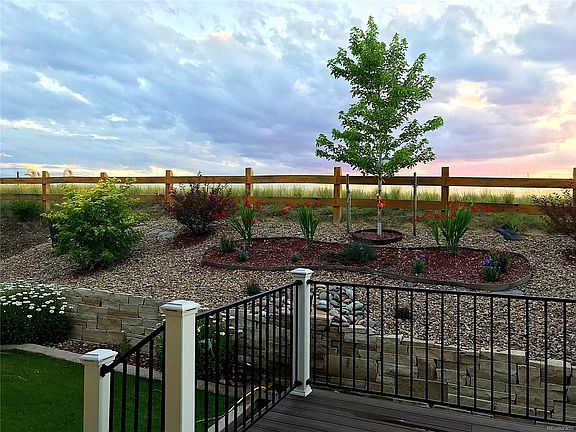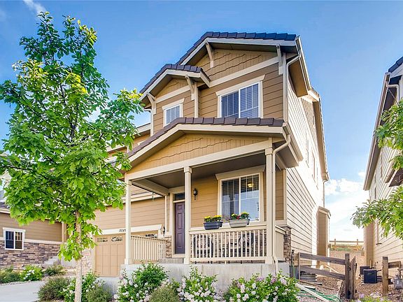 Price decrease due to relocation move!Great find in premier location in Meridian Village,near DIA,470,I25,light rail and East facing.The popular Alison model,4bed/3bath with the extended sunroom and NEW backyard privacy fences.Wood floor throughout the main level,French doors to study,gourmet kitchen,expresso cabinets,walk in pantry,upgraded appliances,5 gas burner and granite island.The extended family room and stone fireplace flows nicely for open concept living with a 3/4 bath on the main floor.The custom drapes,rods,lighting,kitchen refrigerator,washer&dryer are all included.The second floor loft is perfect for extended family living,laundry,5 piece master bath,walk in closet &MOUNTAIN VIEWS.The outdoor living completes this home with a custom trex deck,water feature,EAST facing and BACKS TO OPEN SPACE for privacy and one of a kind sunsets.Move right in and enjoy Meridian Village with a pool, parks and walking trails.Easy to show,professionally cleaned carpets and the home, too.