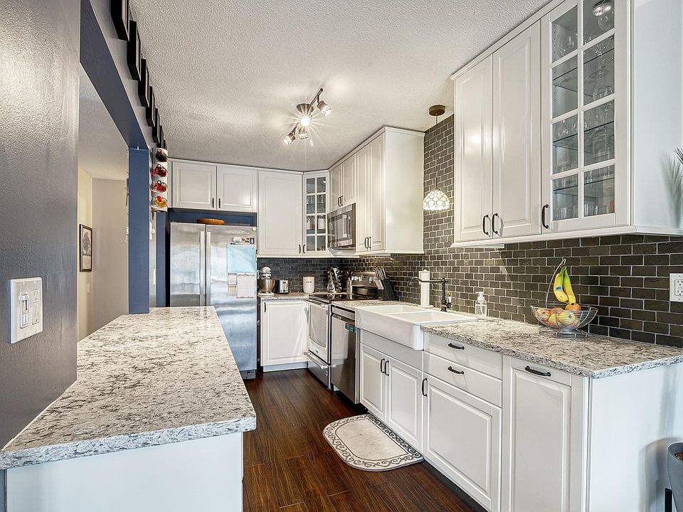 Outstanding end unit townhouse with walkout lower level to a large corner yard. Beautifully remodeled kitchen with quartz counters, tall upper cabinets, new appliances, including dishwasher, and engineered hardwood flooring. Look-through added from the kitchen to the living room to create a great open-concept feel. Open floor plan with access to tree-shaded deck from dining/living area. Both bathrooms are super cute and updated. Recent updates include water heater, newer windows, new furnace and A/C in 2018, new roof in 2019, new dryer in 2020, and gutter guards in 2019. Fabulous wood burning fireplace in the spacious lower level with walkout to patio. Close to Dredd Scott park, shopping, schools and freeway access. This is the one you have been waiting for! Rentals and Pets allowed.