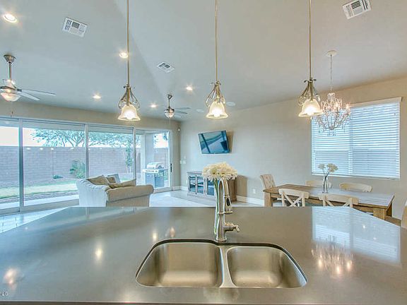 Highly upgraded nearly new home in Eastmark! Bright kitchen with stainless steel appliances, custom backsplash, breakfast bar, lots of cabinet and separate pantry. Spacious great room with beautiful tile floors and ceiling fans, and back wall of glass doors that open totally to create a wonderful indoor/outdoor space that is perfect for entertaining. Master bedroom has it''s own patio exit, and large, deep walk-in closet, and master bath has dual sinks and custom tile shower. Separate office/den space, good sized bedrooms, large main bath has dual sinks and lots of cabinet space, and separate laundry room with storage. The backyard has a covered patio and grass play area. Directly across the street from a park. Great location in Master-planned community with 100 acre park, community center, basketball courts. Connect with your neighbors through events, common areas, and walk/bike friendly streets. Just minutes from the Loop 202 and US 60. DON'T MISS THIS ONE!