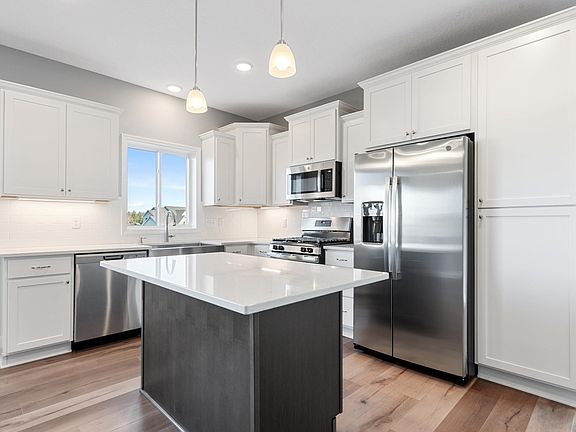 JP Brooks presents the Roosevelt Twin Home with a 12 x 13 Cedar deck with aluminum railing, four season porch and Full Hardie Board Exterior! All living facilities on the main level. Desirable Bridges At Hanover development. Upgraded Cabinets with crown molding. Kitchen features SS gas appliances. Quartz countertops throughout the home. Living room features a centered gas fireplace and step vault. Master suite offers a step vault ceiling with ceiling fan., walk-through private master bath with double vanity and tiled shower surround and flooring. Basement can be finished to include a spacious family room, 3/4 bath and bedroom #4 and exercise room for an additional 1,457 sq ft. Full yard sod and irrigation maintained by HOA. Pictures, photographs, colors, features, and sizes are for illustration purposes only and may vary from the home that is built. Construction begins April 2022 and estimated completion is mid August 2022.