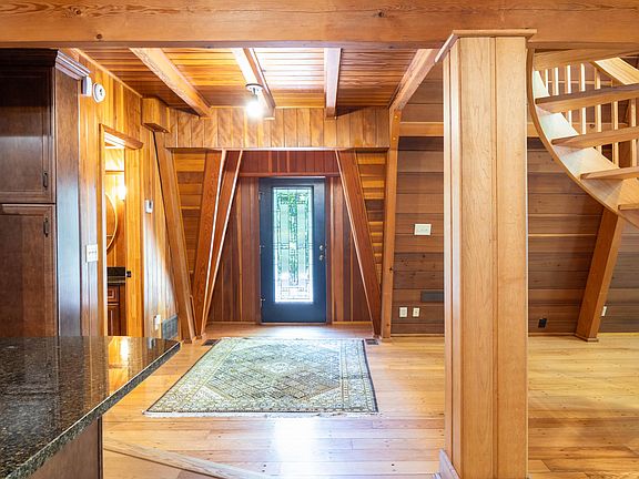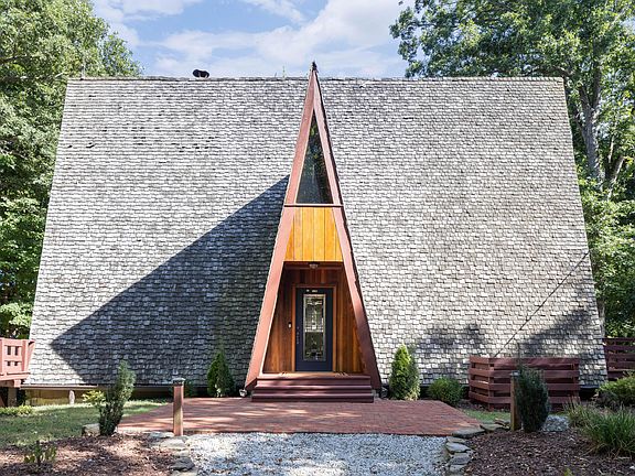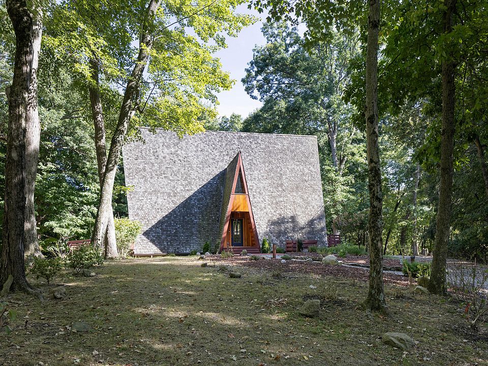 Stunning original owner A-frame nestled amongst mature trees on a 6.93 acre lot with a private gated entrance. Carefully crafted and made entirely with California red wood, this beautiful home spans three stories, anchored by a custom spiral staircase and stone fireplace. Main floor offers open living space and chef's kitchen with stainless appliances and granite counters. Enjoy a first-floor primary bedroom with an en-suite bath and cedar wood closet. 2 bedrooms and half bath on second floor, 1 bedroom and half bath on the third floor. Plenty of storage in the partially finished walk-out lower level. A detached wood cabin offers additional entertaining space and wood fireplace! Offered fully furnished. Option to purchase 36.86 acres across the street. Short-term rental ready!