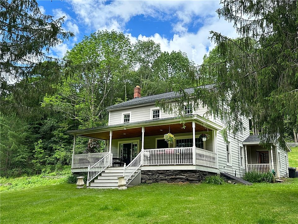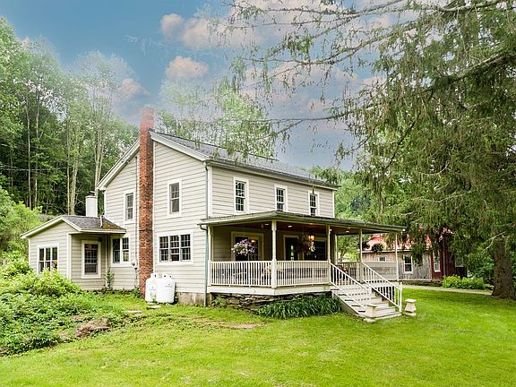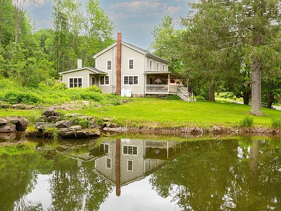 Built circa 1850, this lovely farmhouse embodies all the wonderful things about a home of it’s era - charm, natural beauty, period details and a gracious layout. The house features a comfortable living room, a formal dining room, an eat in country kitchen with exposed wood beams, a cozy reading room, an office, laundry room, 3 bedrooms and two bathrooms. The covered front porch looks out onto bucolic countryside views - a great place to take in the beautiful surroundings. The spring fed pond is a magnet for wildlife and home to Jaws, the resident koi. Wide plank wood floors, a pellet stove with stone back splash and period details add to the allure of this gracious home. A two room barn is a great place for a studio, storage or even an entertaining space! Stone work, a fenced in back yard and adjacent forever wild NYC DEP land all add to the overall value and appeal of this property. The parklike setting is a harmonious blend of old growth trees, lush lawn and stone walls. Minutes to the destination village of Andes and about 2.5 hours from NYC - the location is ideal and close to restaurants, The Andes Rail Trail, art galleries, boating, skiing, fishing and more!