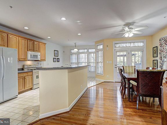 Best and Final Offers Due by Sunday 5pm. Absolutely beautiful end of row townhome located in the amenity rich community of Waverly Woods. Lovingly maintained, this home boasts a new roof, with additional updates including the windows, the garage door, interior paint, and more! Sun fills the living room from its front picture window showcasing double crown molding and gleaming hardwood floors. Decorative architectural columns open to the dining room and kitchen surrounded by windows allowing abundant natural light. The kitchen features a tiered island with a double sink and dishwasher, a large pantry, recessed lighting, a built-in microwave, a sleek French door refrigerator, a breakfast room, and access to the deck. For optimal relaxation the owner's suite offers a high vaulted ceiling, a walk-in closet, and a luxurious en suite bath with a soaking tub, separate shower, and dual vanity. Two sizable bedrooms with ceiling fans and a full bath complete the upper level sleeping quarters. The lower level provides a powder room, large storage room, and a walkout family room with a gas burning fireplace set in an elegant stone surround, flanked by built-in bookshelves, recessed lighting, a cozy reading nook, and atrium door access to the backyard. Enjoy outdoor living on the expansive stone patio and deck with serene wooded views. Waverly Woods amenities include a clubhouse, swimming pool, tennis courts, and a tot lot. There's a community Shopping Center, Downtown Ellicott City , and Waverly Woods golf course for shopping, dining, and entertainment. Area commuter routes include I-70, MD-99, and MD-20. This spectacular home won't last!