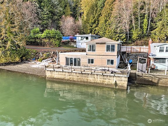 A very special and GORGEOUS setting with sweeping views along the waters edge on the North Shore of Hood Canal. Bring the tools and your dream plans to bring this rare treasure location back to life! Home is currently gutted with some new windows, framing, siding and other items done - just waiting for you to finish as you like and make it your own. Was a duplex but use your imagination- so many possibilities at this state of construction! Investment? Fulltime living? VRBO?Approx 50 ft of bulkheaded waterfront with stairs to the water/beach and a boat crane for ez in/out of your water toys. Enjoy the bounty of the canal - clams, oysters -fishing or just hang out and watch the everchanging marine scenery. A very unique opportunity here!