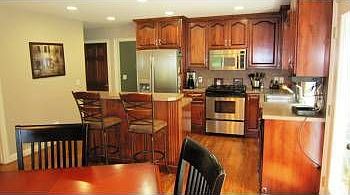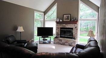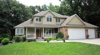 Maintenance free 1 ½ sty w/4 bd,4 bth, on .77 acr w/wkout, 3447 fsf. Treed lot, landscpng&city water.Oak flr in the kitchen w/cherry cabinets.3 car garage with 8 ft garage doors.Stone fp w/gas log&blower.Cherry doors, cherry cabinets&vanities.Middle upstairs bed has large W/I closet/toy rm hidden behind sliding bookcase.Movie theater area in lower level.Storage in the furn.rm & under front porch/tornado shelter. Ext.is brick, heritage shingles, & Dutch lap double prem.vinyl siding.Fire pit area