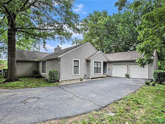 New Roof Coming! Low maintenance stucco exterior, nestled on a cul-de-sac private treed lot in Quivira Falls. Modern updated kitchen with new appliances which all stay, new cabinets with soft close doors and drawers with pull-outs and quartz counter tops. Huge living room w/vaulted ceiling, rich wood beams, stone fireplace and sliding doors leading to deck that overlooks private treed yard. All bathrooms have been Remodeled with new low entry solid surface showers. All bedrooms and laundry on main level. Washer and dryer to stay. Enjoy views from breakfast table and ultimate privacy surrounded by woods and stream. Finished walkout basement with full bath with granite topped vanity and tub/shower, freshly painted 1200 sqft recreation room and newly carpeted 4th non-conforming possible bedroom. New garage floor was put in when purchased. Wonderful neighborhood amenities include a club house, 2 pools, tennis/pickleball courts, basketball courts, and playground. THIS IS A MUST SEE!