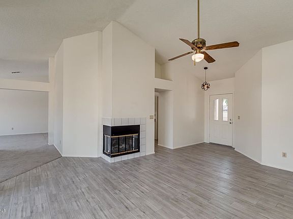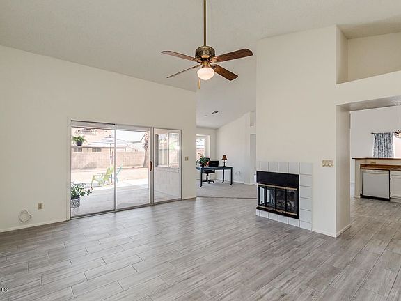 Welcome to this spacious light, bright beauty situated on large lot in Country Meadows! Home enters to a formal living room with fireplace and a lovely niche that could be a den or formal dining area. Kitchen features breakfast bar that looks out to dining area and cozy family room. Soaring vaulted ceilings throughout. Master suite has a private sliding door to patio. The master bath features double sinks, shower and separate garden tub as well as a roomy walk-in closet. New flooring throughout and fresh paint inside and out! North/ South exposure. Nearby enjoy Park West, Westgate shopping, Top Golf and Stadium, Glendale Municipal airport park. Convenient access to 101 freeway. VIEW ALL UPGRADES IN DOCUMENTS!!