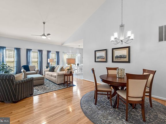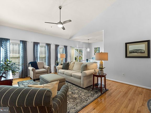 Introducing the Hickory Crest 55+ or Better Villa, perfectly situated in an ideal location with no CPRA dues! Don't miss out on this beautifully updated move in ready villa. This home features a 2 car garage, vaulted ceilings and hardwood flooring throughout. The kitchen was updated in 2021/2022 with updated cabinets and new hardware, quartz countertops, stainless steel appliances, backsplash, and luxury vinyl flooring. The laundry room off the kitchen has a full size washer and dryer with a newly installed tub. The owner's suite is bright and airy with a large bay window, walk-in closet with custom shelving from The Container Store to maximize space. Both bathrooms have updated cabinets, new quartz counters, mirrors, lighting fixtures, faucets and toilets. Second bedroom can be used as a guest room or office space. Faux wood blinds were added to all windows in 2023 except for the slider. Furnace and hot water heater were replaced in 2019. Whole house humidifier 2022. Garage doors replaced and outdoor lighting 2023. Within walking distance to Hickory Ridge shopping center which includes a Giant and dining options. Nothing to do here but move in. Schedule your tour today!