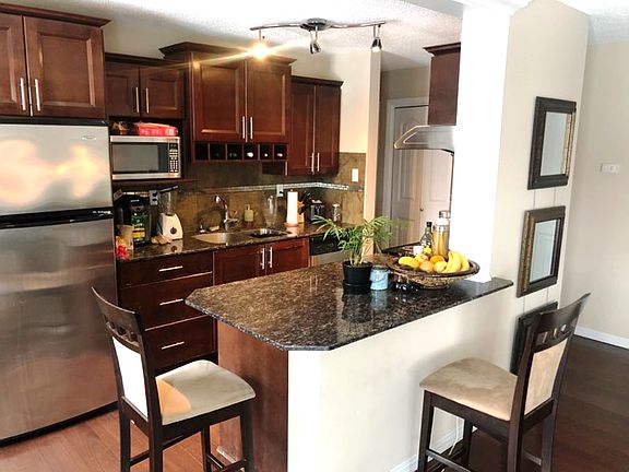 This beautiful apartment is steps from the U of A and Whyte Ave! This absolutely stunning top-floor executive apartment comes complete with hardwood floors, granite countertops, dark, rich cabinets, and all stainless steel appliances. The large storage room is fit for storing all your possessions. The large 4-piece bath features tile, granite, and a lovely glass vessel sink. Relax in the living room with wall-to-wall hardwood, or enjoy the comfort of your large bedroom with more closet space. Best unit in the building as its top floor faces the beautiful tree-lined street. The building offers shared laundry facilities.