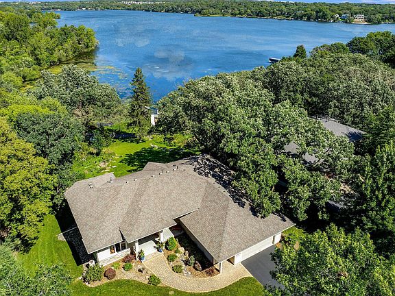 Exquisite waterfront property on Lake Marion, a 530 acre, full recreational lake with excellent fishing and water quality. Stunning, 3br/3ba, walkout rambler, custom designed and built by JB Woodfitter to showcase spectacular lake views from its every window. This sparkling one owner home welcomes luxurious one level living. Its open and functional floor plan, along with high quality finishes, and amenities make it perfect for living and entertaining to the fullest. Impressive architectural design with dramatic angels, four-sided architecture, expansive Anderson windows, welcoming covered front porch, sprawling stamped concrete raised deck with maintenance free railings and staircase, and oversized driveway - combined lend excellent exterior appeal. Spectacular .96 acre lot, with a gradual grade to the lake, beautiful mature trees, perennial plantings, tiered gardens, fire-pit with a flag stone surround, paver patio, in-ground irrigation system with drip lines for watering plants, convenient kayak rack located near the lake, miles of paved walking trail that round the lake, and 77 feet of lake frontage make for a prime setting. Enjoy panoramic lake views from every area of this amazing home. Rare to find, attached, oversized, two car garage (with two in-floor drains), plus a detached (heated) three car garage for boat, toy, car storage or phenomenal workshop. French garden style doors at the rear of this home open to approximately 687 square feet of unfinished space, that awaits your design and future equity. Enjoy nearby Antlers Park which features a main pavilion with meeting room, kitchenette and restrooms; a central plaza, expanded parking lot areas; food and beverage provided by LBC on the Lake; public restrooms, a gas fire-pit with seating areas, additional picnic shelters and shade structures; sand volleyball courts, playground and hammock area; and a Lake Marion Regional Greenway Trailhead, providing walking and biking access to the city's extensive trail system. All the amenities described above are photographed and captured in the virtual tours for this amazing property. For additional summer entertainment, enjoy "Live at the Lake" summer performance series, offering a diverse schedule of music and performance groups, held at Casperson Park Outdoor Performance Stage also located on beautiful Lake Marion which is free to the public. Grab your family and friends, bring a blanket or lawn chair, and enjoy the entertainment! Food trucks are available onsite during performances. The Casperson Outdoor Performance Stage is fully accessible with a 2,500-square foot plaza with lit pathways, located between two parking lots, and near a playground. This lovely home’s convenient location offers every amenity you could wish for nearby, along with convenient access to I35 for commuting ease and excellent Lakeville school district. Look no further…this is the dream home that you have been looking for!